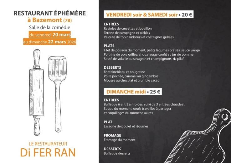 Pour ceux qui apprécient cette cuisine locale et "fait maison" dressée au cœur du village, notez dès maintenant les dates dans vos agendas. Le restaurant éphémère réinstallera ses fourneaux et sa salle à manger à la salle La Comédie le week-end du :